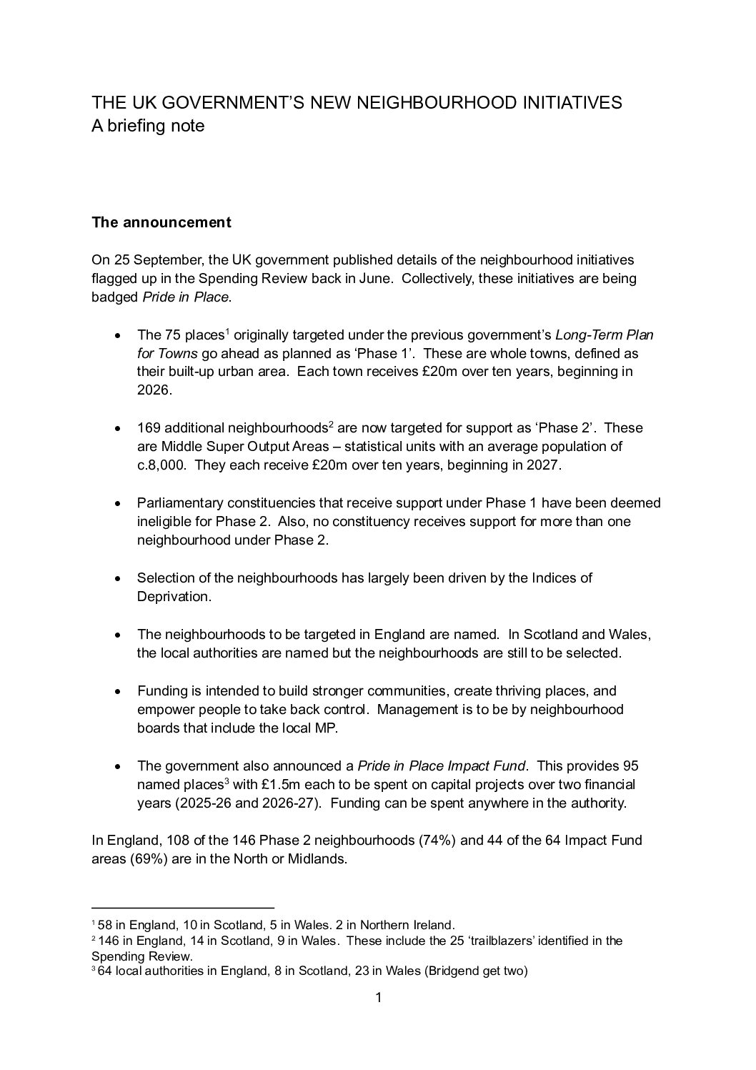 A briefing note on the UK government’s neighbourhoods initiative.